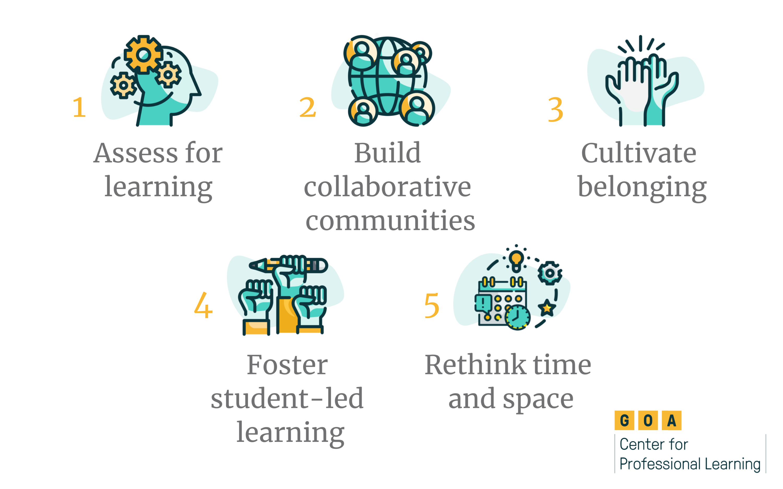 At GOA, we learn from, engage with, and contribute to thought leadership across the teaching and learning field. We engage with our member schools as learners, highlighting best practices from their schools and classrooms. This leads to highly curated and impactful resources, examples, and ideas. Our professional learning offerings feature helpful playlists that quickly empower educators to move from exploration to action.