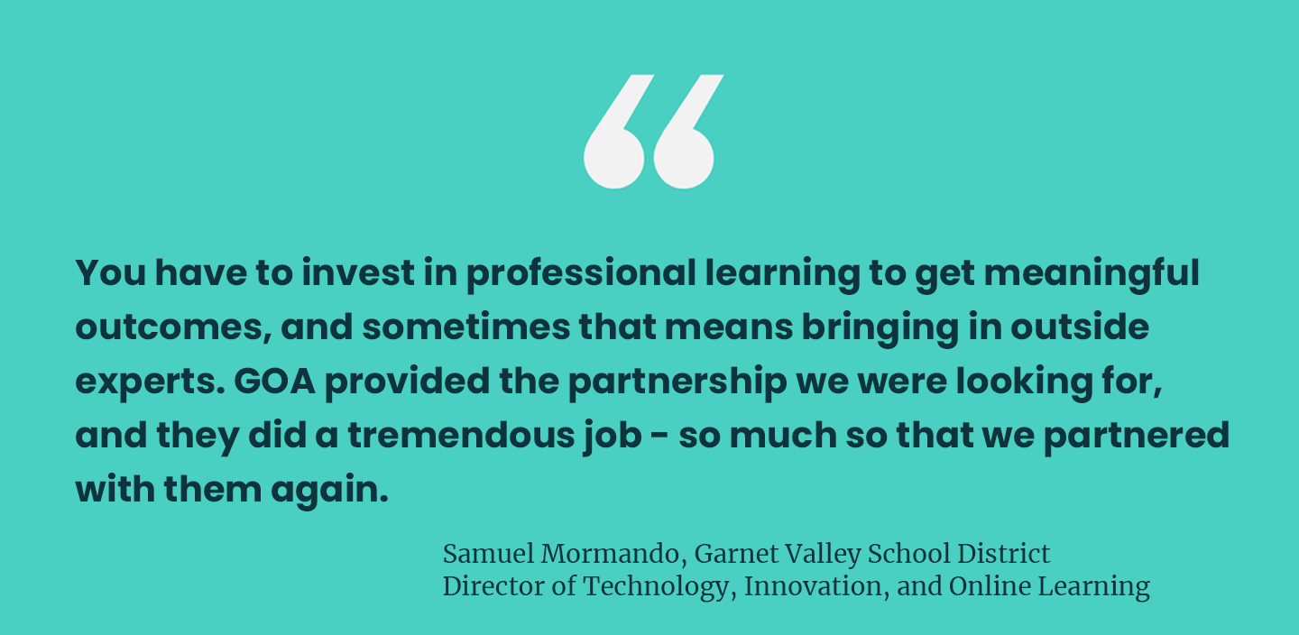 Garnet Valley chose GOA as its professional development partner to help cohorts of educators design high-quality online learning experiences and gain confidence teaching in a digital learning environment.
